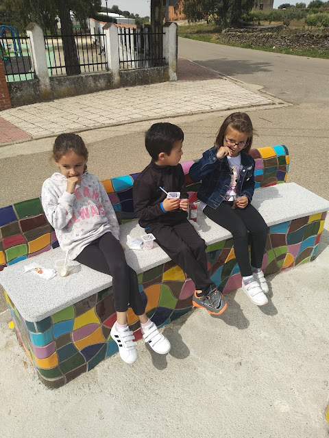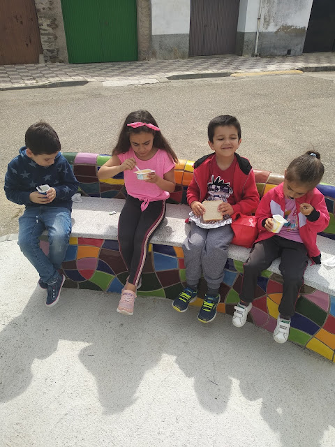 Aprovechamos la salida al buzón de correos para hacer una merienda al aire libre en el parque de la localidad, trabajando diversos aspectos de educación ambiental como el reciclaje y el cuidado del medio ambiente.
